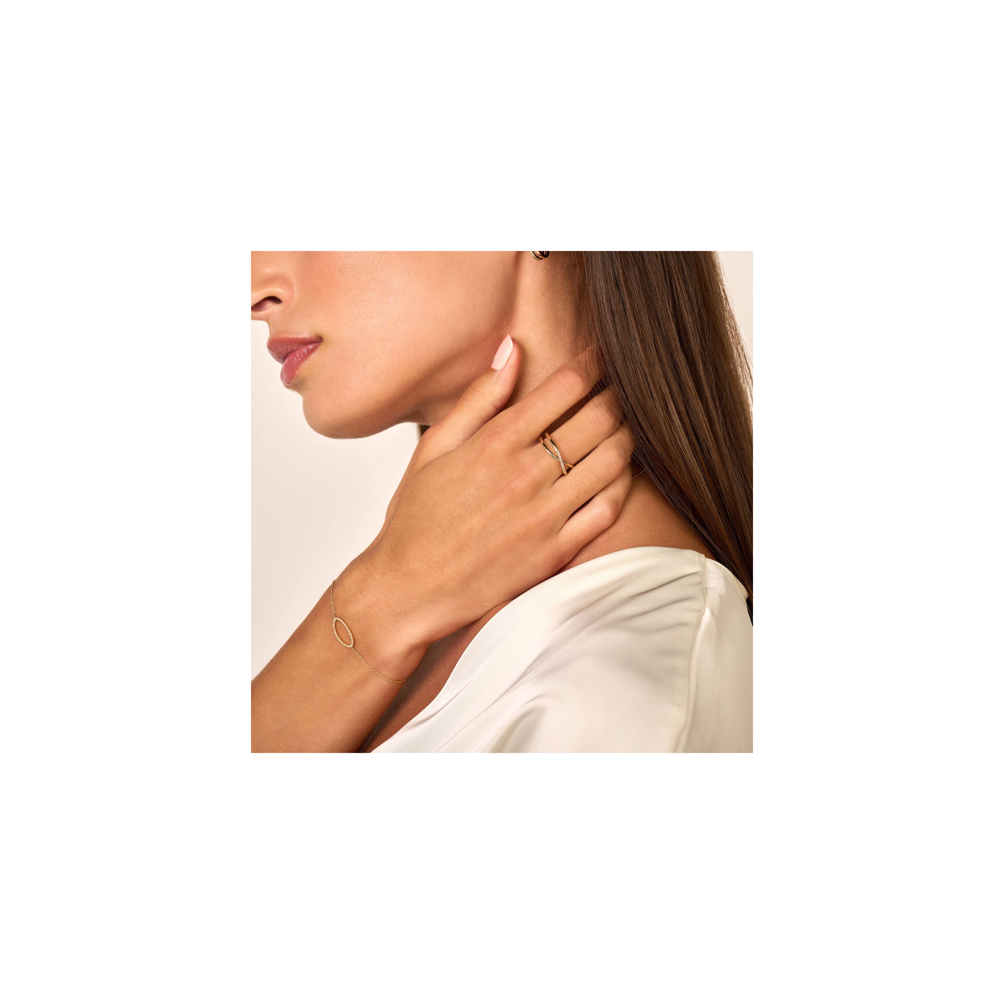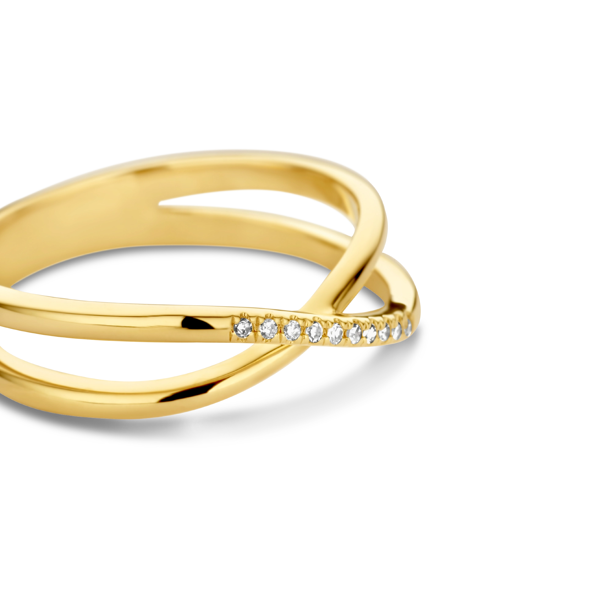 When elegance and brightness meet. A 14 carat gold crossover style, featuring 10x classic diamonds on a rounded duo band — it’s as pure and simple as that.