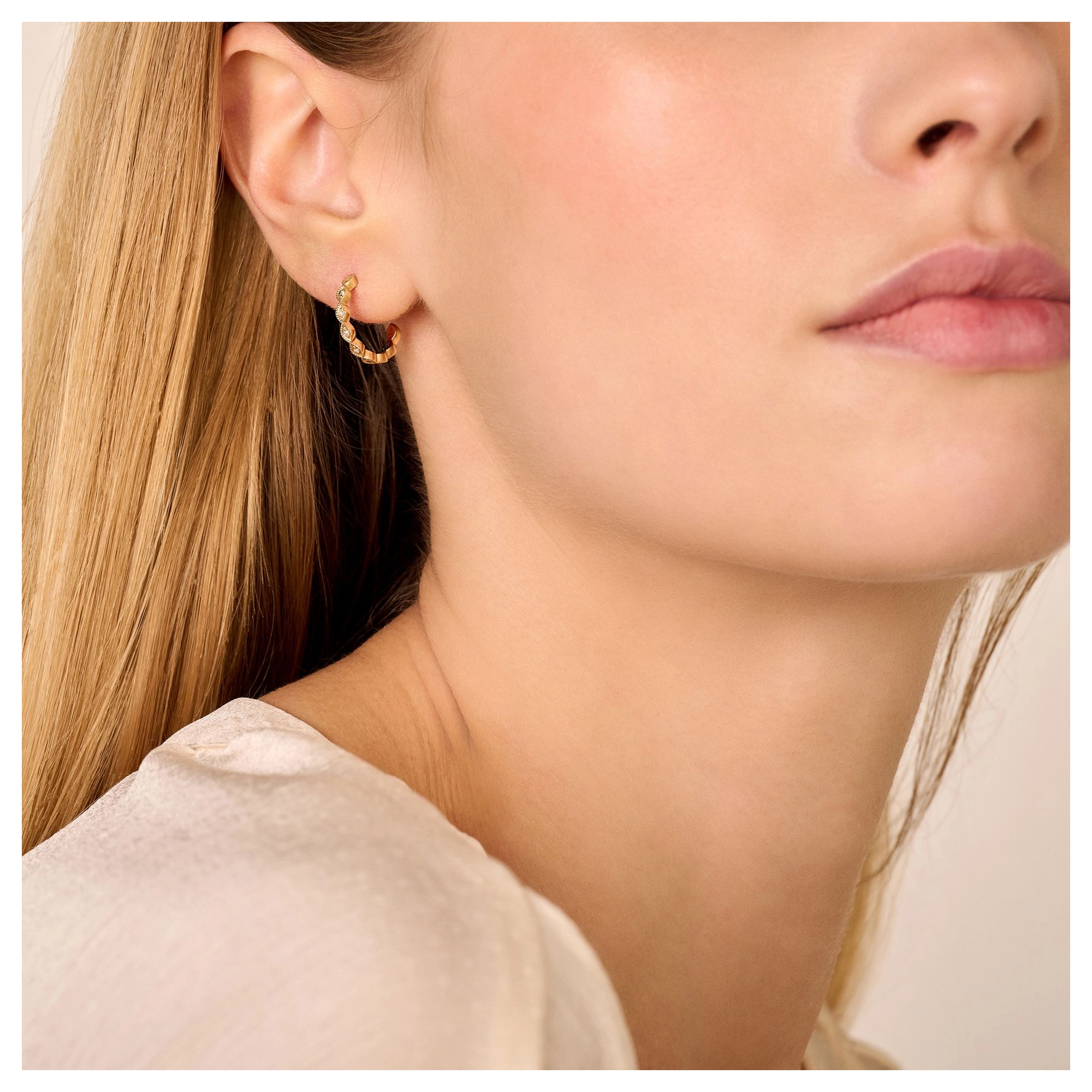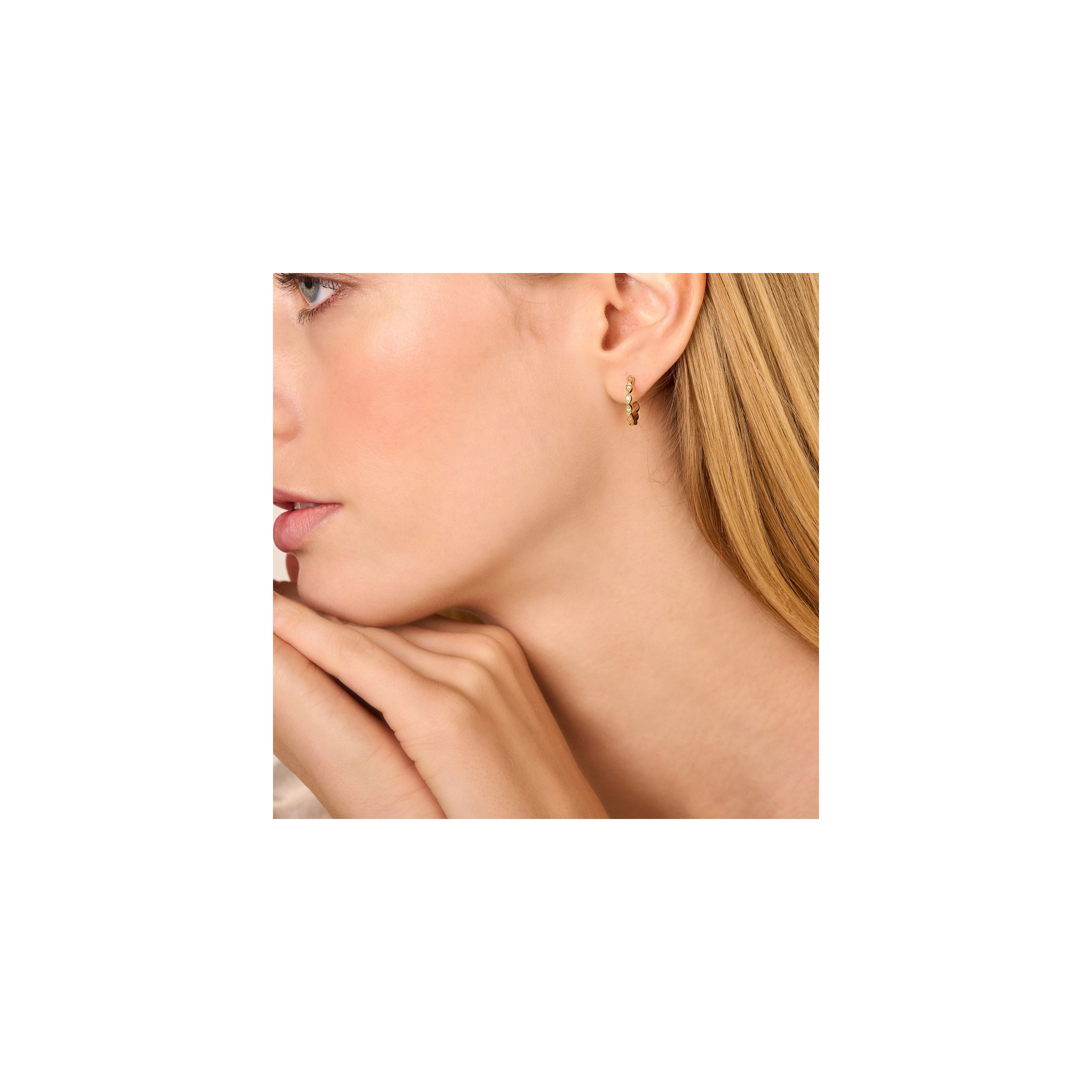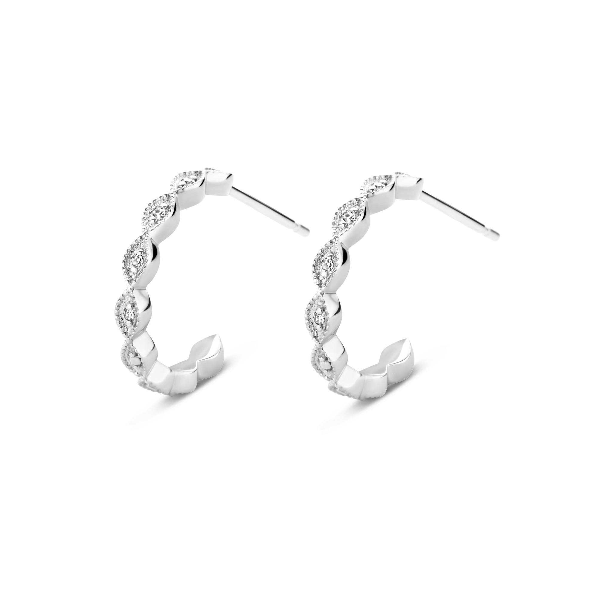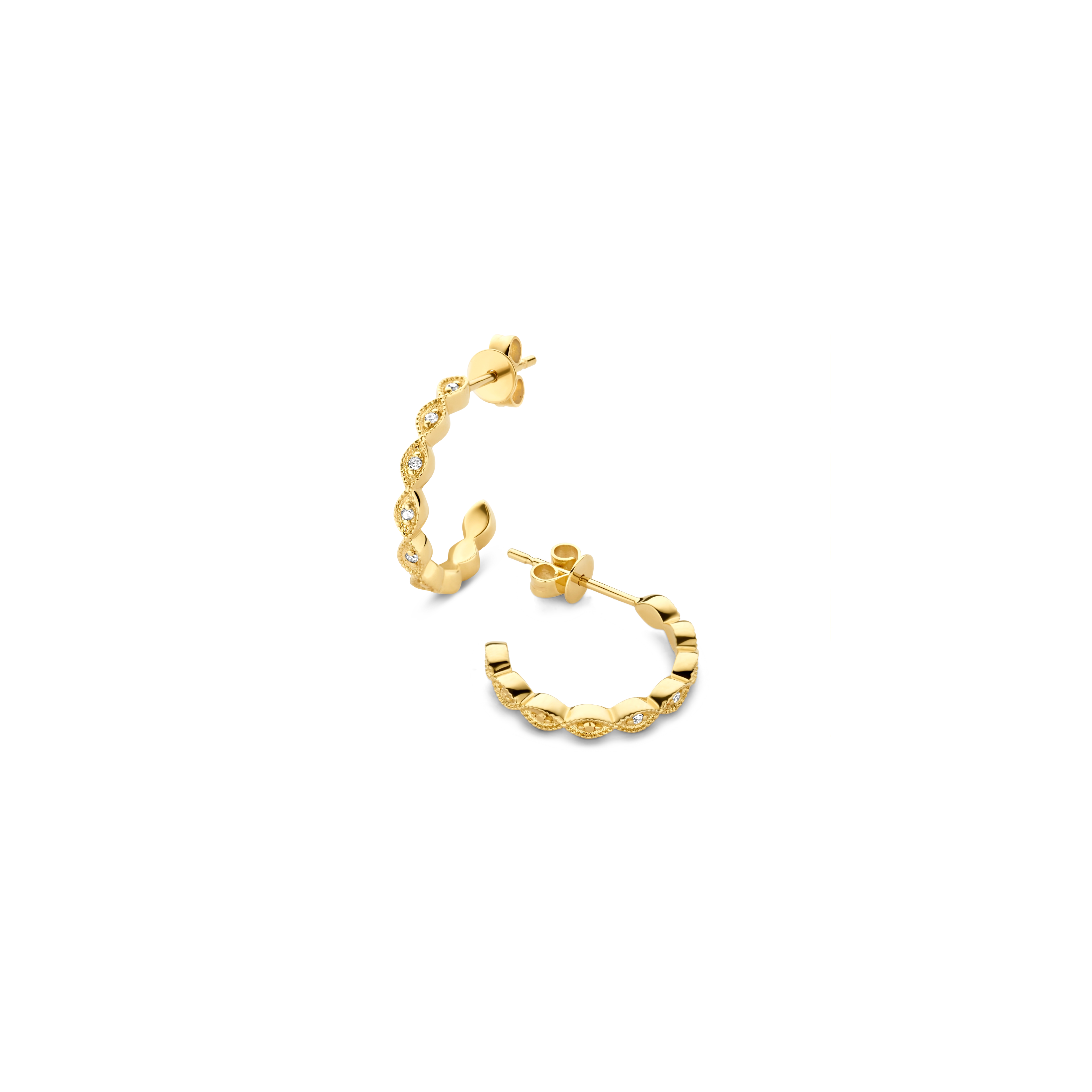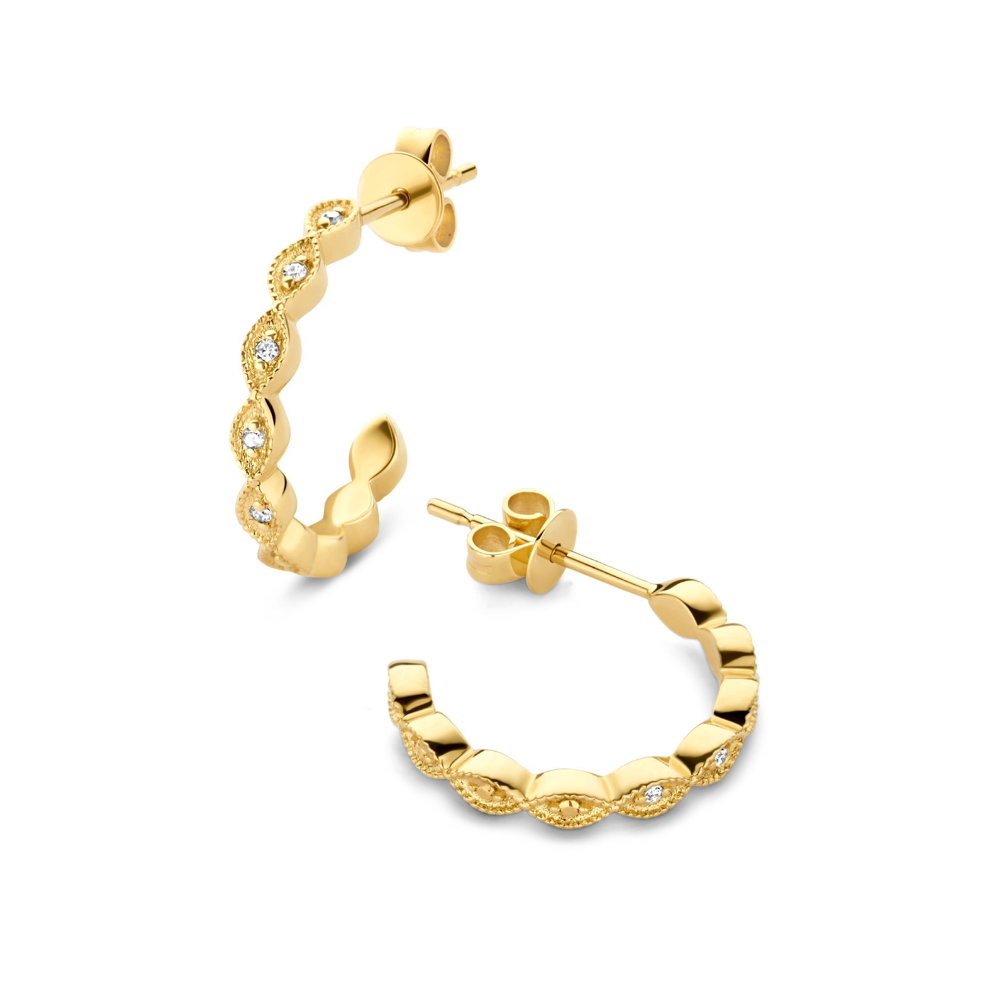 Romantic vintage feels wearing these intricately detailed 14 carat gold hoops — handset with 10x natural diamonds, they’re your modern day heirloom piece in the making.