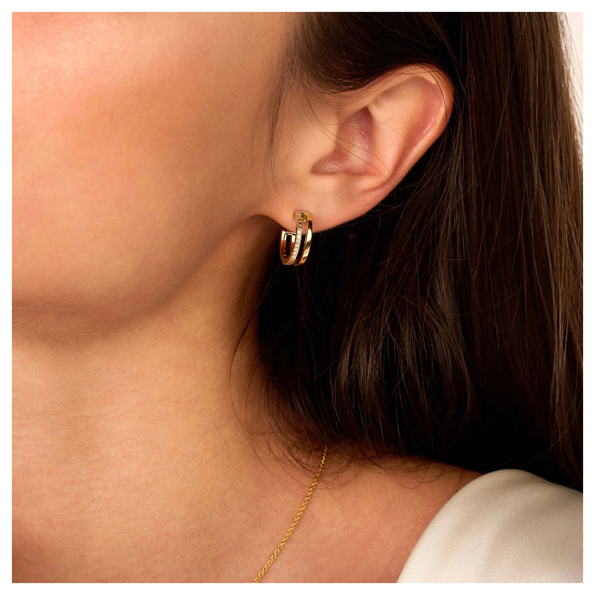 A premium edit of our iconic diamond hoops. Featuring 14x timeless white diamonds, putting the ‘win’ in ‘twinning’ when it comes to these bold 14 carat gold 2-in-1 hoops.