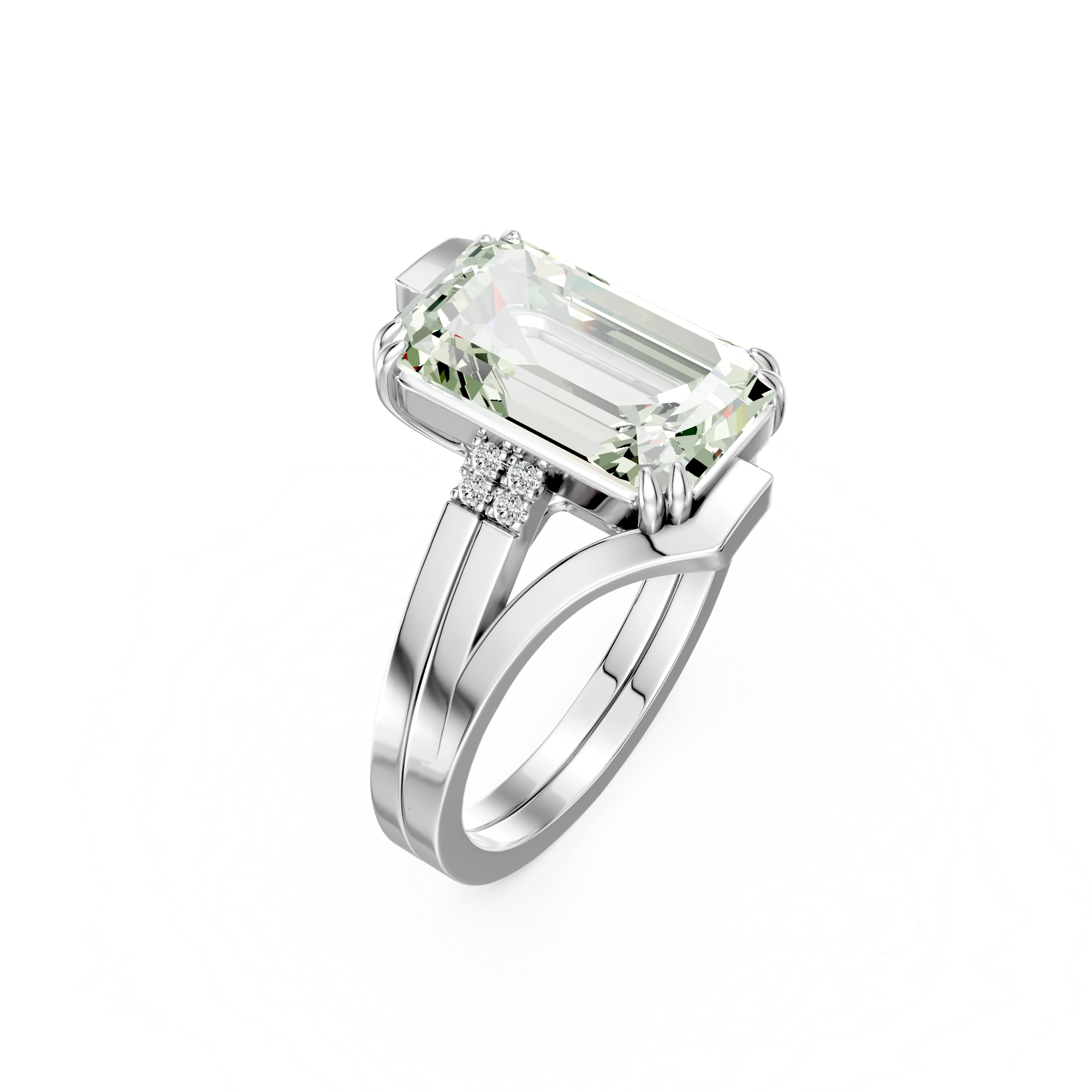Bold yet balanced, this ring is defined by a striking green amethyst framed by eight white diamonds. The clean, architectural setting highlights the gemstone’s soft glow while adding a refined sparkle. Crafted in 925 sterling silver, it’s a statement piece that feels elegant and confident, day or night.