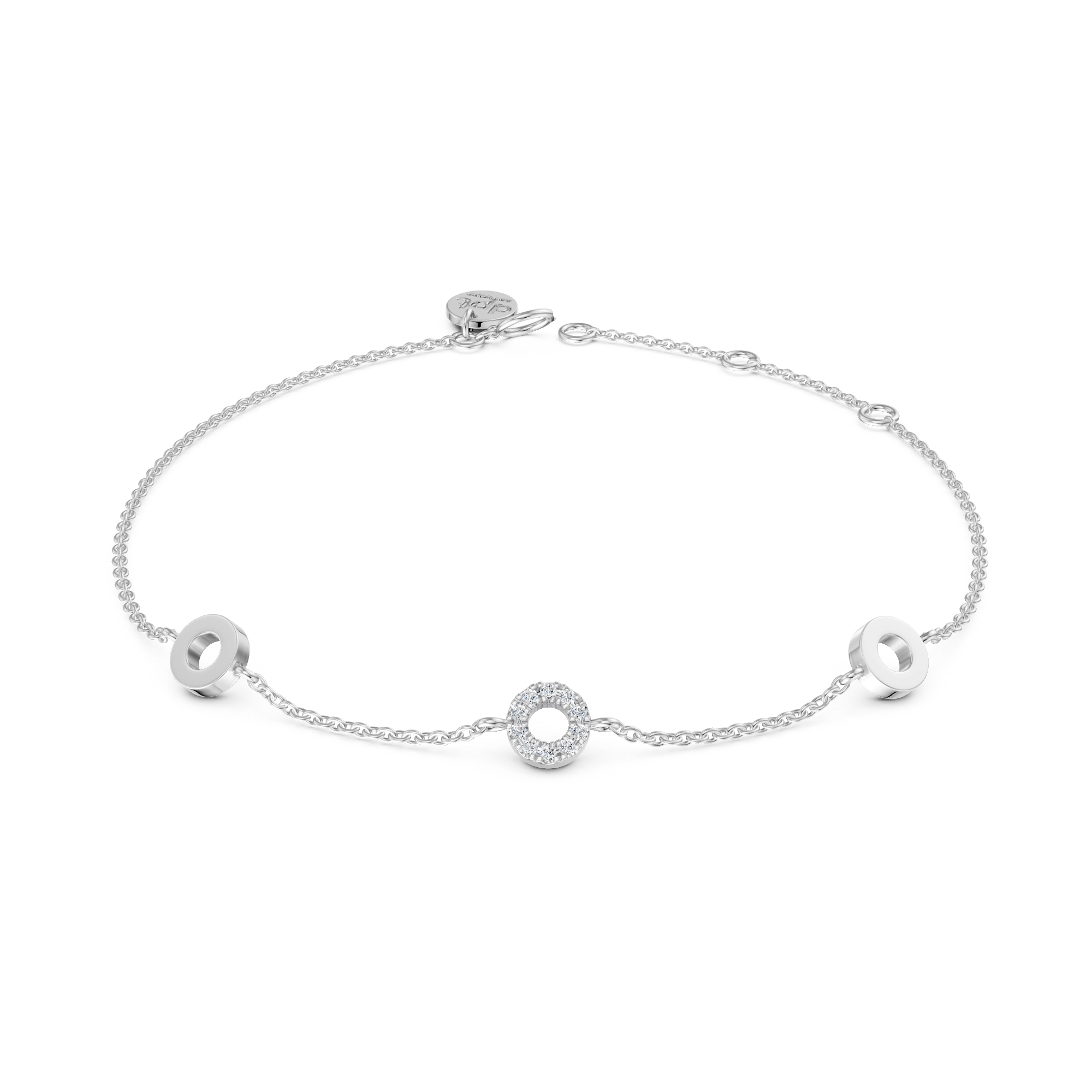 Light and graceful, this bracelet features petite diamond circles that move softly with the wrist. The subtle sparkle adds a refined finish without overpowering. Crafted in 925 sterling silver, perfect for everyday elegance.