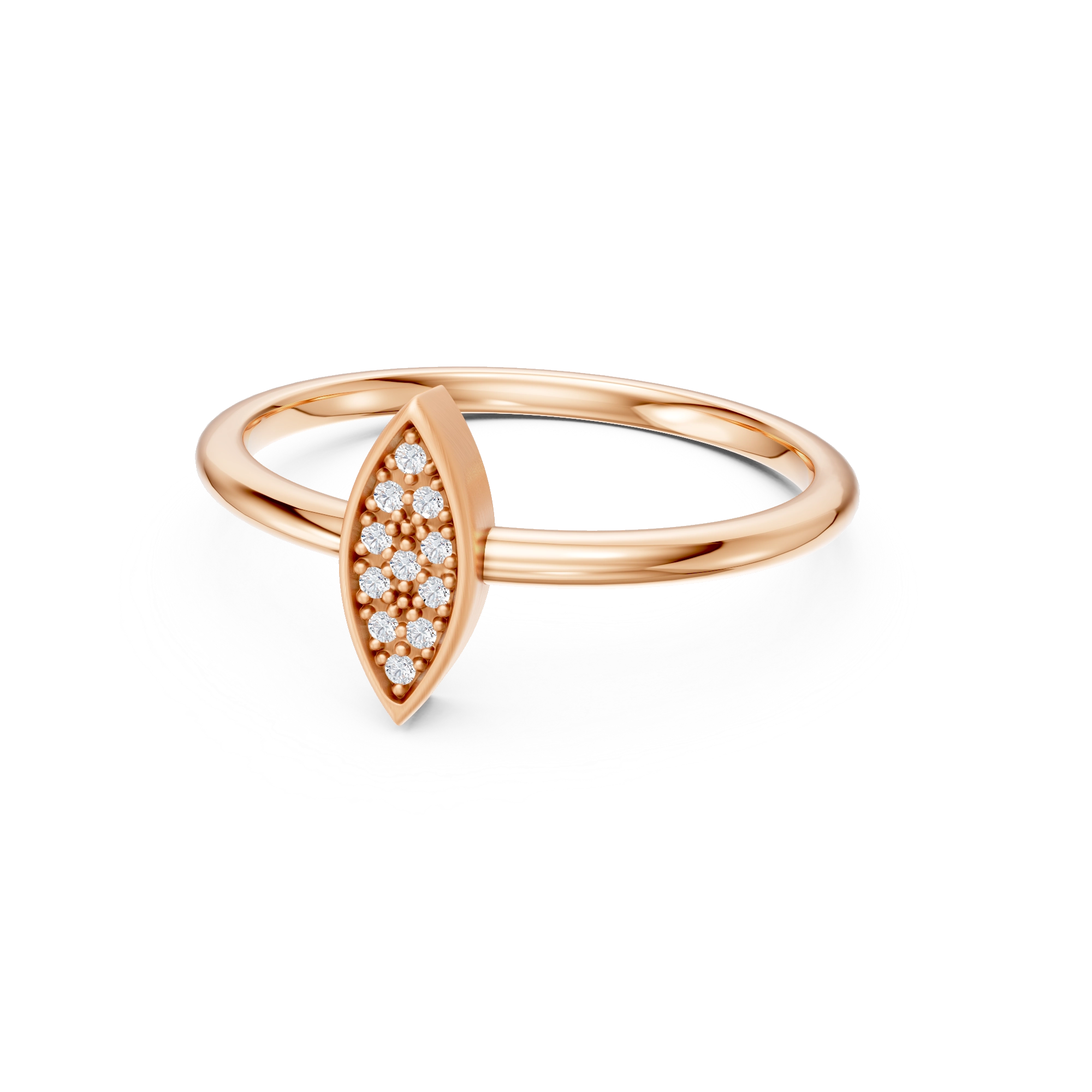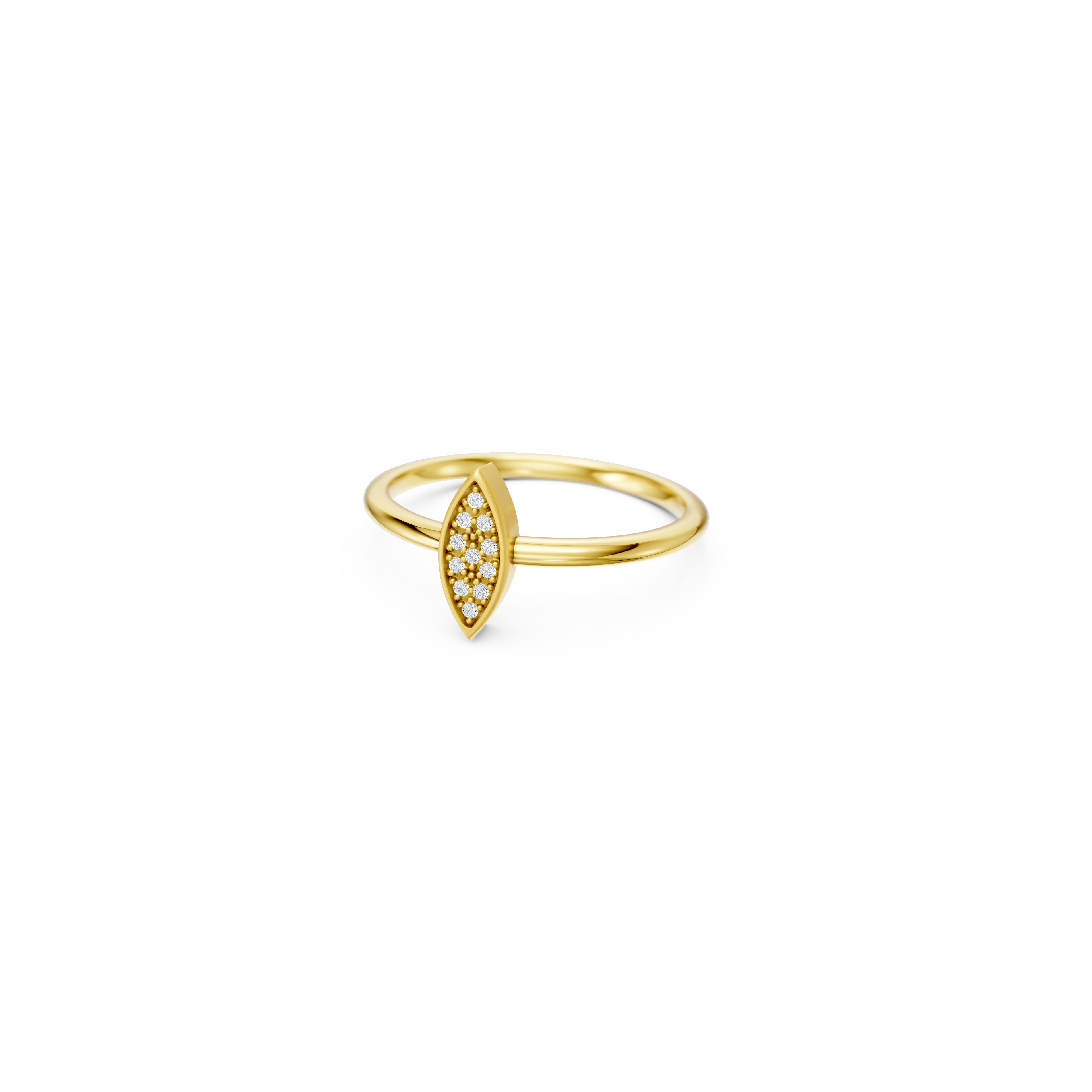 With an eye for elegance, this ring showcases a marquise-shaped center piece handset with 11x natural diamonds, positioned on a softly brushed shank. Its delicate form draws inspiration from the peacock’s flowing feather motifs, all coming together in a true eye-catcher.