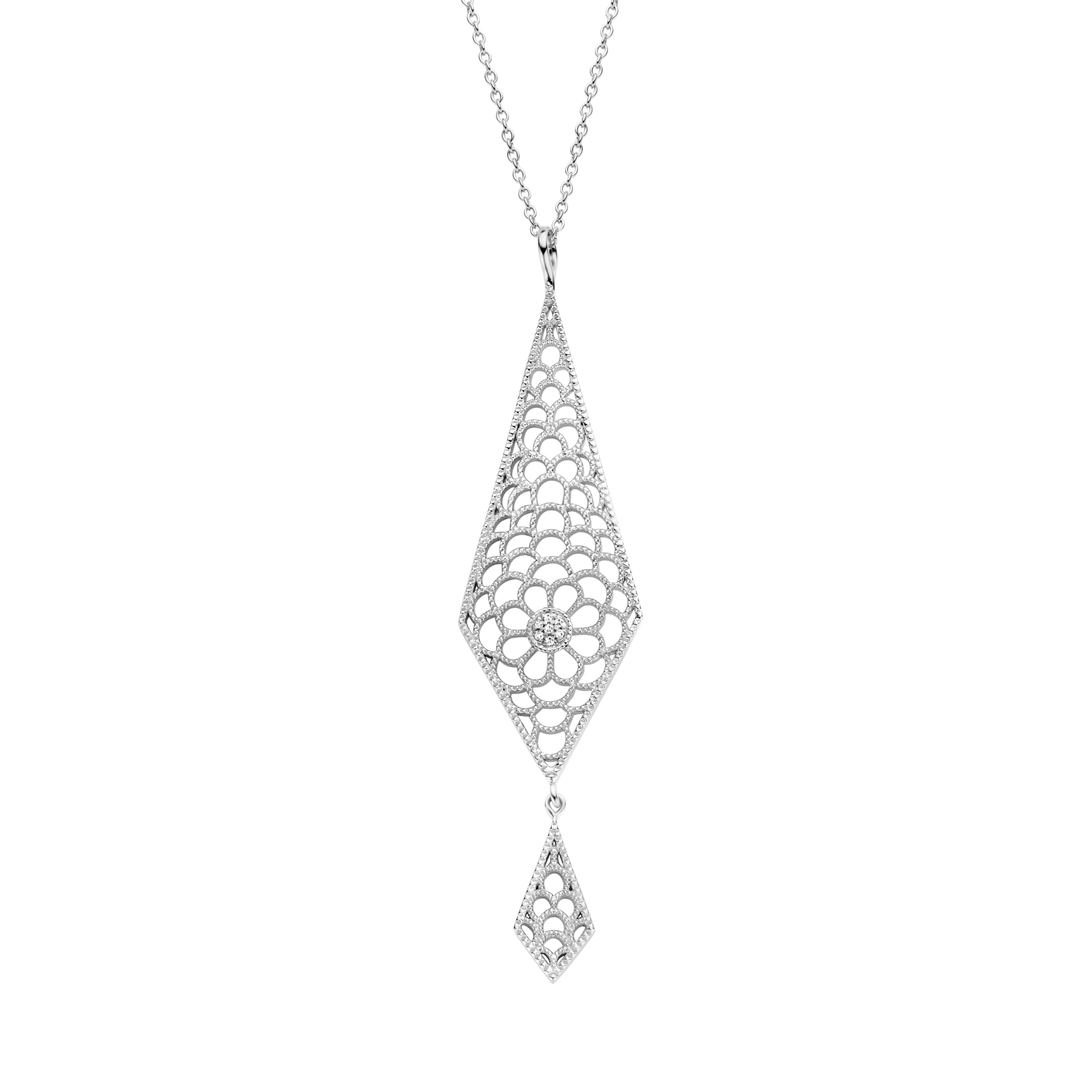 Nothing sparks more joy than life's surprising encounters. Our Miracle pendant necklace with its oriental cut-out pattern, handset with 7x white diamonds, make up a surprisingly enchanting mix of rich details and organic shapes.